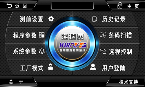 將氣源和我們的氣密性檢測(cè)儀的氣源接口和工裝的氣源接口相連。將氣密性檢測(cè)儀的電源接頭連上電源。確認(rèn)所有連接完成后,點(diǎn)擊氣密性檢測(cè)儀的開機(jī)開關(guān),這樣儀器的界面就打開了。