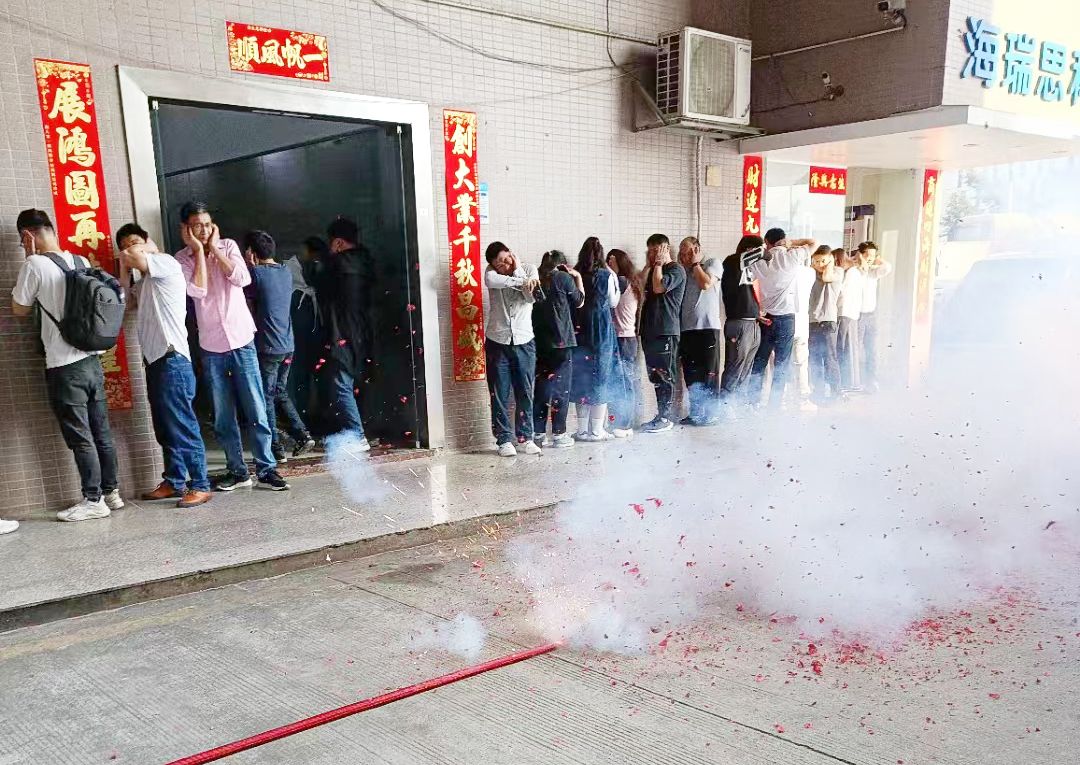 東莞海瑞思也緊隨其后,海瑞思測控大樓處,爆竹聲聲,響徹云霄,預(yù)示著新的一年東莞海瑞思生產(chǎn)經(jīng)營紅紅火火,2024年做大做強(qiáng)。