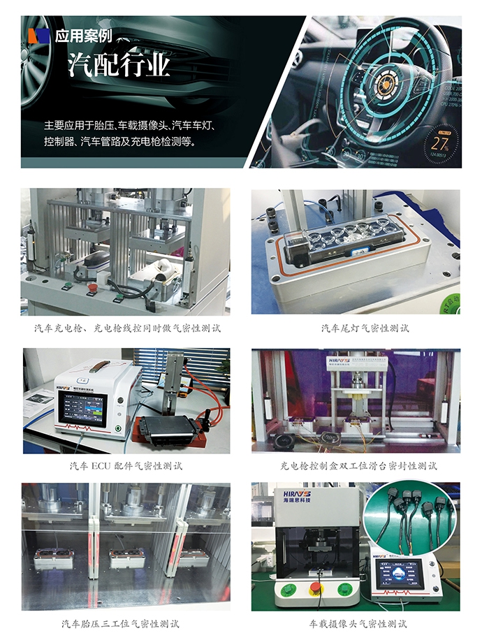 本次展會專業(yè)關(guān)注的部分也是需要做氣密性檢測的部分,海瑞思科技做過很多汽車零部件,變速器,車轎,輪轂以及新能源電池方面的氣密性檢測。在汽車配件的防水檢測方面,案例豐富,技術(shù)成熟,本次展會將會為大家演示汽車各個零部件的氣密性檢測方法,為大家展示,高精度,高效率,智能化的汽車配件氣密性測試方法。