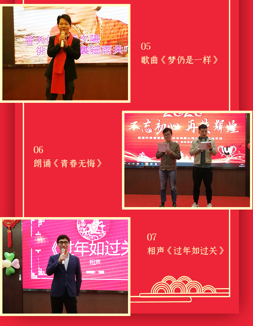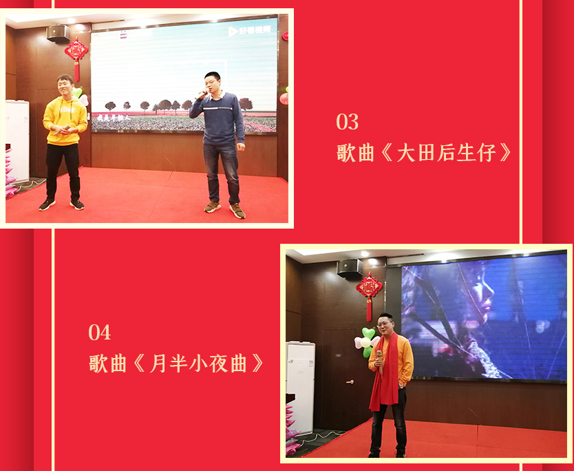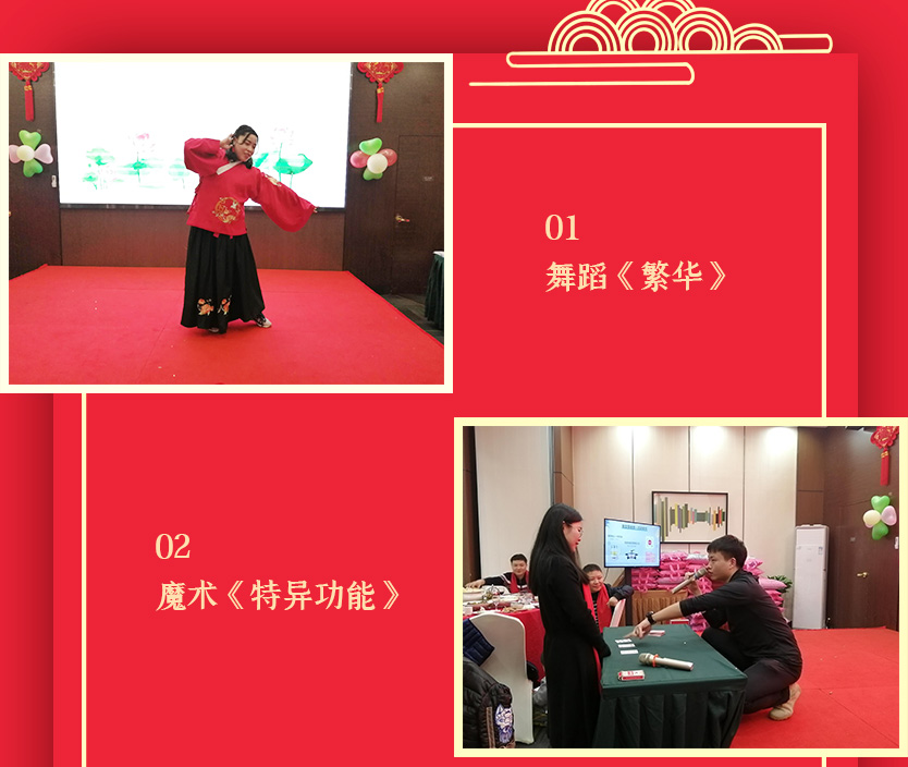 在這個幸福的時刻,美味佳肴當然和精彩節(jié)目最配啦。海瑞思的小伙伴不僅工作能力強,而且多才多藝哦!海瑞思科技坐落在深圳這個蓬勃向上的城市,公司的80%的小伙伴是一群年輕后生,他們?yōu)榇蠹規(guī)Я苏f唱《拜大年》和網紅歌曲《大田后生仔》,銷售總監(jiān)黃總帶來的歌曲《夢仍是一樣》和廖總帶來的 《夜半小夜曲》,讓我們感受到他們不僅在工作上金戈鐵馬,同時內心仍然有一片溫暖的海洋。不僅有歌曲還有魔術《隔空取物》《特異功能》讓我們再次感受到海瑞思真的是臥虎藏龍之地!不僅有歌曲,魔術還有舞蹈,海瑞思才女張菊為大家?guī)淼奈璧浮斗被ā穼⑼頃葡蛄烁叱?。最后我們的海瑞思張總的小公主為大家?guī)砹嗽姼枥收b《我的爸爸》,小姑娘稚氣的聲音,美好的詩句溫暖了整個晚會.讓我們這些離家很久的浪子忽然有一種歸心似箭的感覺