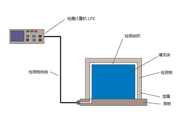 氣密性檢漏儀的檢測系統(tǒng),壓降法顧名思義,通過等量進氣、穩(wěn)壓、檢測、然后檢測氣體壓力、體積的變化由精密測試儀系統(tǒng)經(jīng)過一系列的采樣、計算、分析從而得出其泄漏速率、泄漏值等,根據(jù)這些數(shù)據(jù),做出判斷OK或NG。主要運用于小家電產(chǎn)品防水測試,醫(yī)療器械氣密性測試 ,不銹鋼容器泄漏測試。此方法泄漏檢測原理:在密閉的工件腔體內(nèi)通入一定壓力一定體積的氣體,靜止一段時間使其壓力穩(wěn)定,然后斷開部件的壓縮空氣供給(閥門關閉),經(jīng)過既定的測量時間過后測量壓力變化。如果存在泄漏,傳感壓力就會下降。其原理和泄漏檢測方式如下圖所示