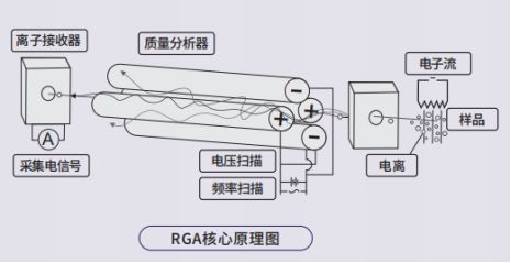 RGA通過對樣品氣體分子電離后,離子束經(jīng)過質(zhì)量分離器時,僅僅將有用的目標(biāo)離子送入到檢測器中。