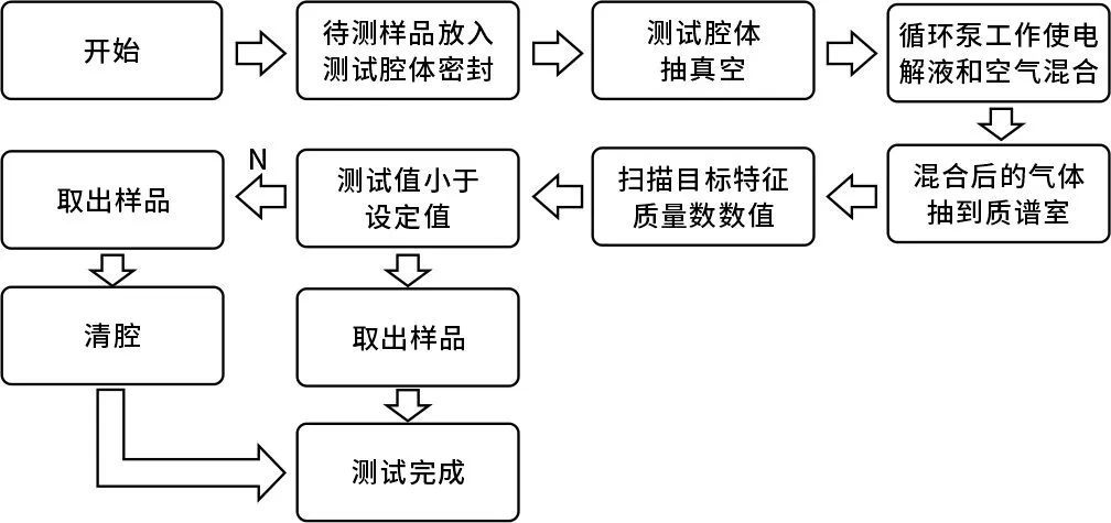 ②將檢測腔體抽真空,促使電解液從漏孔泄漏并揮發(fā);