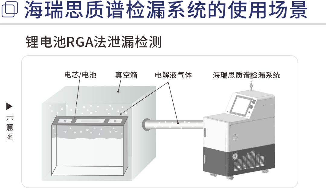 海瑞思質(zhì)譜檢漏系統(tǒng)是一種基于電池泄漏RGA原理的檢測設(shè)備。RGA為殘余氣體分析儀,通過質(zhì)譜分析的方法可以定量和定性分析出真空腔中殘余氣體的濃度和成分。