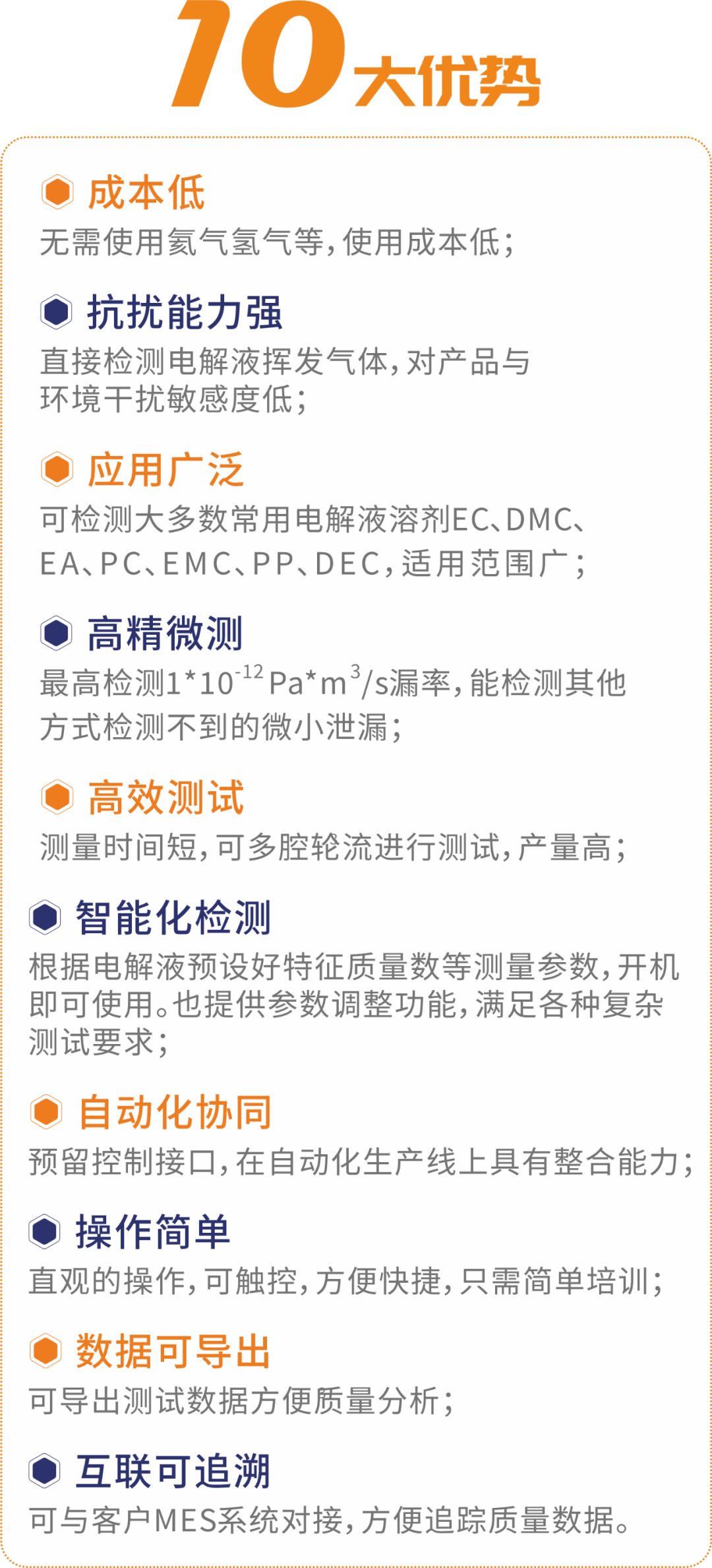 ①要提前加氦,氦氣和氦質(zhì)譜儀使用成本非常高;②氦氣的存放環(huán)境有要求;③需要投入氦氣回收系統(tǒng),成本高;④氦氣很輕,在電池內(nèi)部氦氣會飄到殼體上方,殼體下方的縫隙沒有氦氣,下部如有泄漏將有可能檢測不出來。