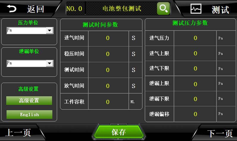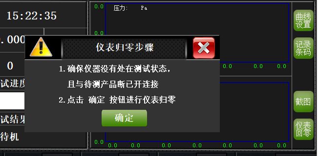4. 開啟“儀表歸零”功能,確保測(cè)試氣壓正常;