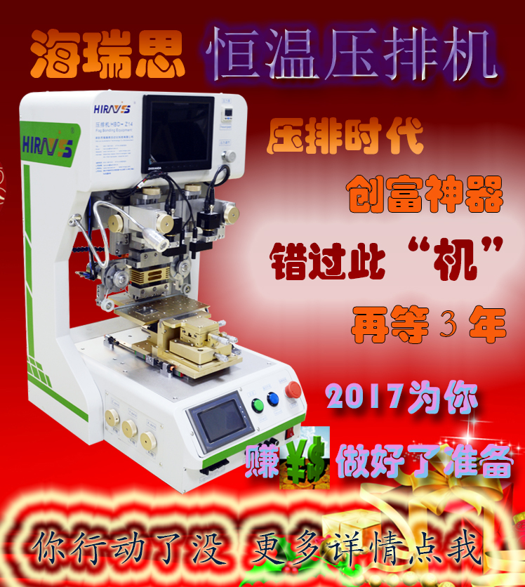 所以,如果一臺(tái)壓排機(jī)除壓頭加熱機(jī)構(gòu)加熱方式不同的情況下,上述第(2)至第(10)都相同的情況下,那么脈沖壓排機(jī)比恒溫壓排機(jī)貴,可是事實(shí)剛好相反,很多廠家為了追求利潤(rùn)的更大化,除了壓頭部分使用了脈沖部件貴一點(diǎn)外,其他的第(2)至第(10)機(jī)構(gòu)都使用了一些較差的部件,甚至省去了一些機(jī)構(gòu),只能靠使用者人工去完成大部分工作:比如手動(dòng)對(duì)焦、手動(dòng)對(duì)排線、手動(dòng)卷硅膠皮等。而恒溫壓排機(jī)現(xiàn)在之所以反比脈沖的貴,如深圳海瑞思生產(chǎn)的恒溫壓排機(jī)來(lái)說(shuō),除恒溫加熱部分成本低一點(diǎn)外,其他的機(jī)構(gòu)都用的是較好的材料或加了一些可以提高自動(dòng)化程度的輔助機(jī)構(gòu),還有就是解決了壓頭快速降溫問題,所以會(huì)貴,但使用起來(lái)更方便。手機(jī)壓排品質(zhì)更有保證
