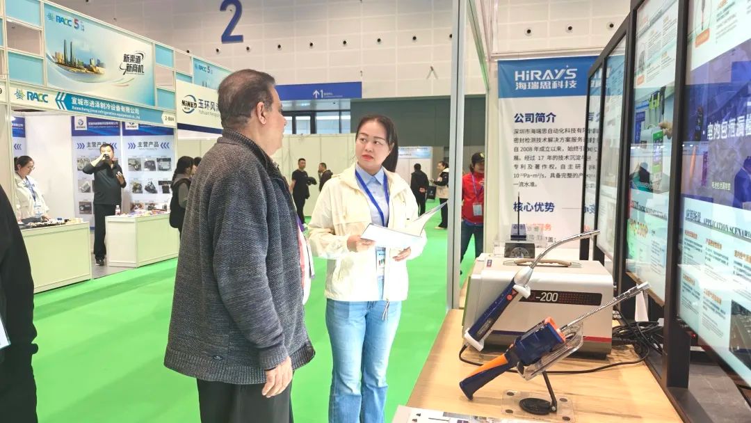展會(huì)期間,海瑞思技術(shù)專家全天坐鎮(zhèn)展位,為往來(lái)賓客精準(zhǔn)解答“微漏難發(fā)現(xiàn)”“腔體結(jié)構(gòu)復(fù)雜”“效率與成本難兼顧”等密封檢測(cè)難題?,F(xiàn)場(chǎng)氣氛熱烈,眾多海內(nèi)外制冷設(shè)備制造商與冷鏈企業(yè)代表駐足展位,對(duì)展示的解決方案表現(xiàn)出極大興趣。